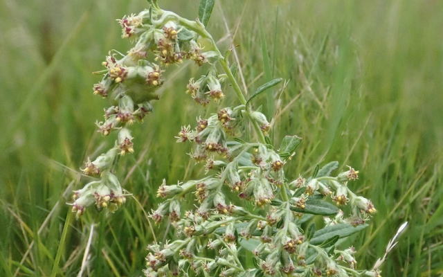 園内の草地でヨモギが花を咲かせています。ヨモギは風媒花といって、風にのせて花粉を飛ばします。虫にアピールする必要がないので華やかさにはかけますが、小ぶりでふわっとした控えめな花を咲かせます。ヨモギ餅など、葉っぱのイメージが強いヨモギですが、お花にも注目してみてください。(石毛)