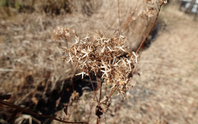 秋の七草で知られるフジバカマ。現在の姿はピンク色の鮮やかさはないものの、カラッと乾いたちいさな花束のようになっています。日の光を浴びてキラキラしていました。一見地味に見える冬の公園も、よ~く探してみると魅力的な自然に出会えますよ♪(石毛)
