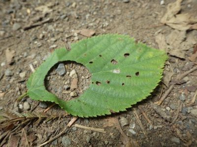 サクラの葉っぱに綺麗に空いた穴。