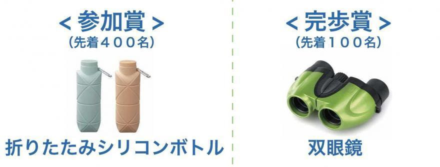 5つのうち4つ以上のミッションをクリアした方には完歩賞(双眼鏡)※先着100名