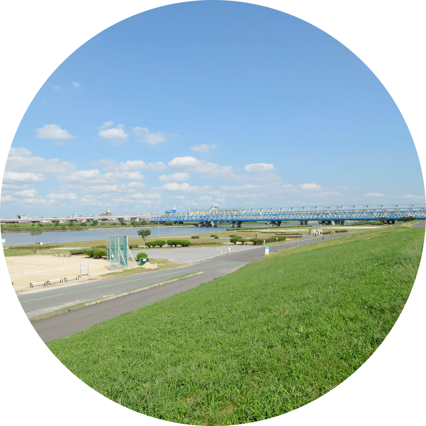 千住新橋緑地付近から扇大橋付近(約4km、徒歩1時間程度)