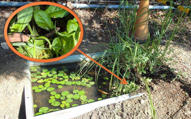 公園全体がビオトープの当公園ですが、お家などでも真似出来る小さなビオトープの見本を先月作りました。まだまだ改善の余地ありですが、そんなビオトープにも小さなカナヘビが来ていました。どうやら夜にはタヌキもうろついていたようで、早速様々な生きものを呼び寄せる効果を発揮しているようです。(増山)