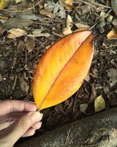 公園内を歩いていて始めに見つけたのは、タイサンボクの葉。