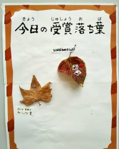 せっかくなので、花とみどりの学習館で開催中の落ち葉コンテストに出してみましょう。