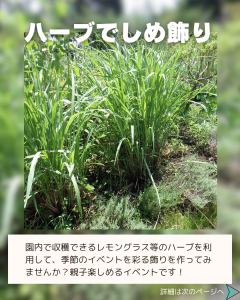 内 容:園内で収穫したレモングラスでしめ飾りづくりに挑戦します。
