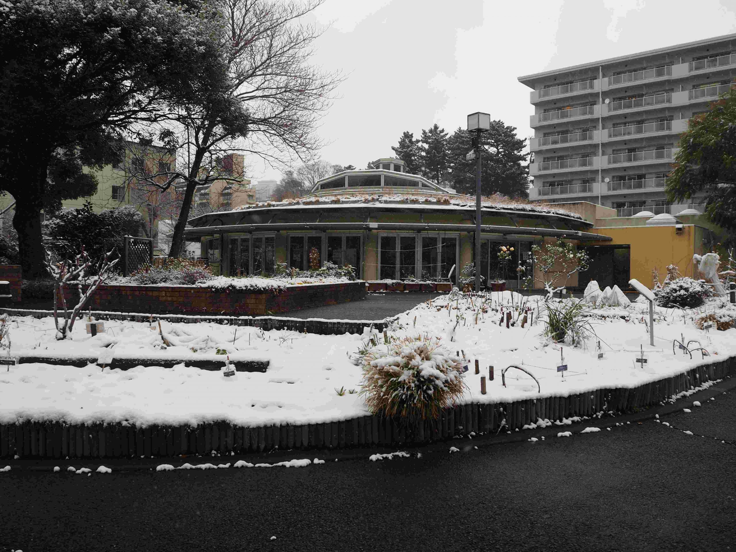雪化粧した花と緑の学習館