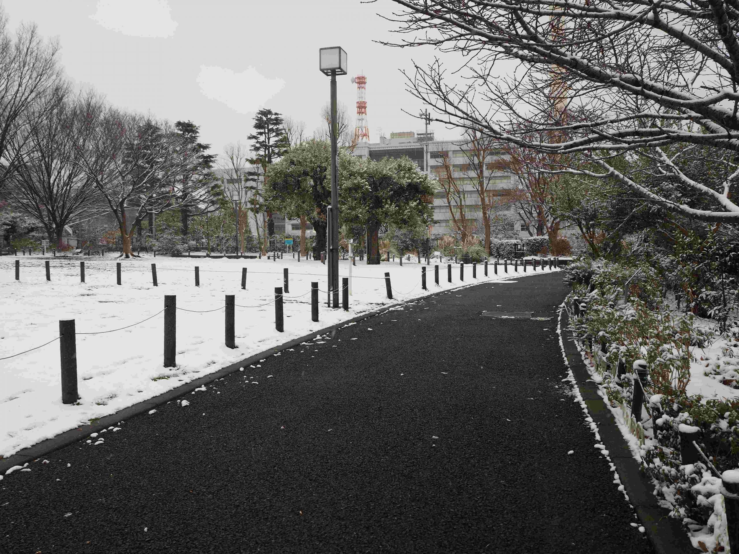 2026年2月8日中目黒公園の積雪 園路に雪はありません