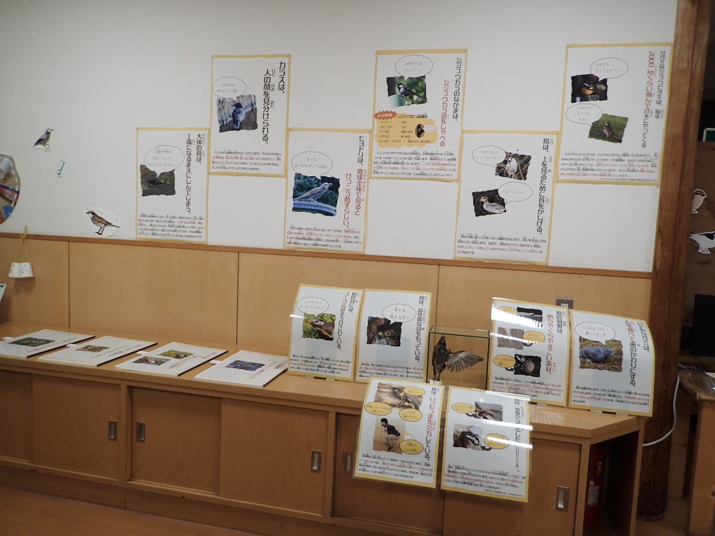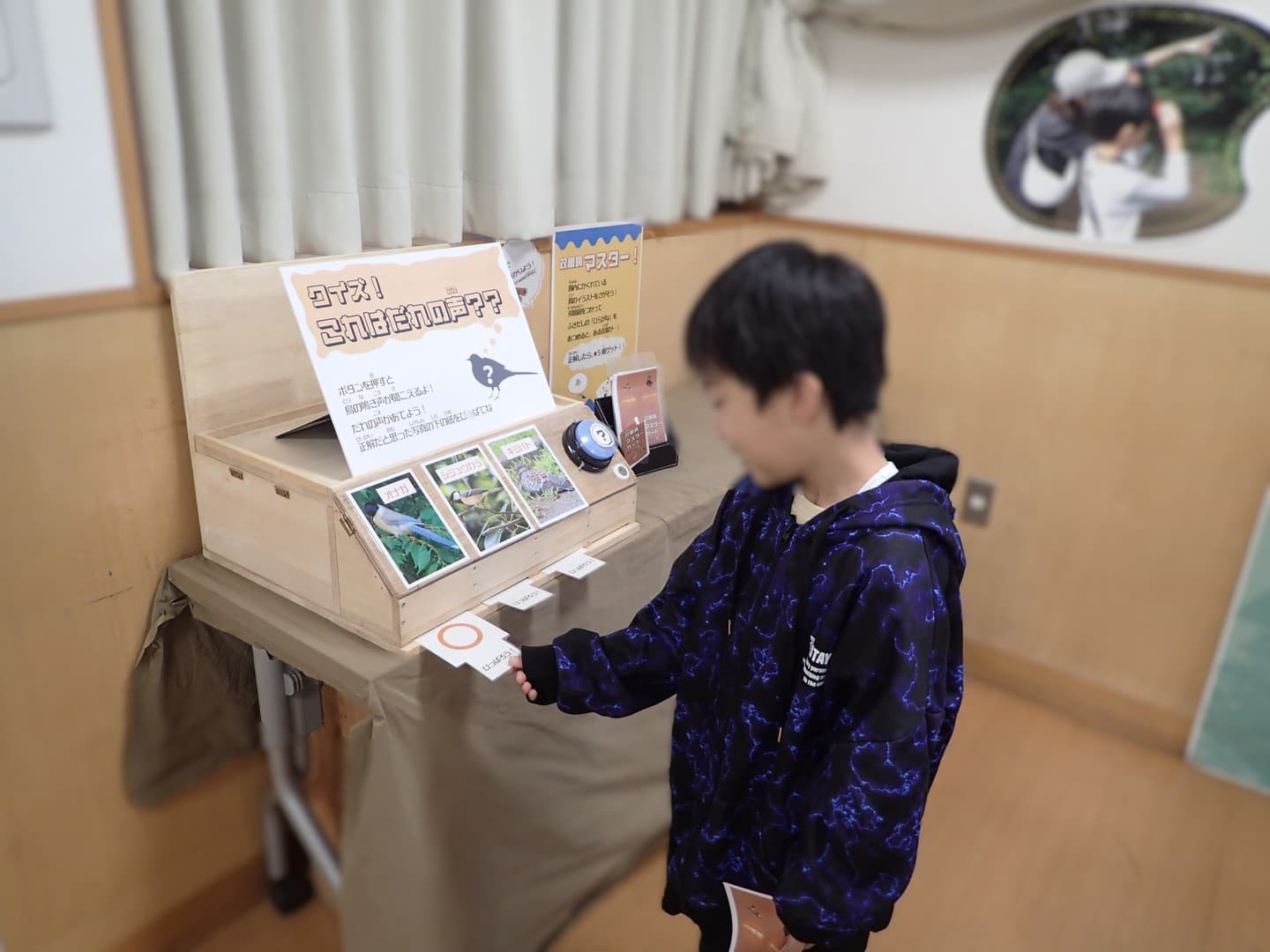 鳴き声クイズや双眼鏡の練習展示があるよ。