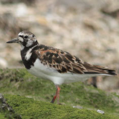 4月から5月の春と8月から9月の秋にかけて旅鳥として見られるシギです。京の女性のような艶やかな白・黒・栗色の模様が名前の由来です。嘴は黒く短く、先端が尖っています。護岸で海藻や小石をひっくり返し餌を探す姿が見られます。