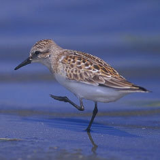 4月から5月の春と8月から9月の秋にかけて旅鳥として見られるチドリです。夏羽は胸と頭頂部が橙褐色で、前頭と過眼線が黒くなります。潮が引くと干潟に現れジグザグとあるきながらゴカイなどを探す様子をみることができます。