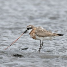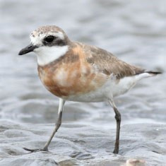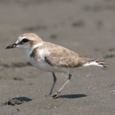 留鳥として年間を通じて見られるチドリです。特に夏に多くみられます。上面が灰褐色で下面が白色。夏羽になると雄は額と眉が白く、前頭と過眼線は黒くなり、頭頂も橙褐色になります。潮が引くと干潟でゴカイなどを探して歩く様子が見られます。