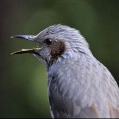 全長約28㎝。全体的に灰褐色で頬が茶色いのが特徴です。日本全土で広く見られますが、季節によって群れで移動しながら生活します。花の蜜や果実を好み、都市部の緑地でもよく見られます。集団で「ピー、ピー」と大きな声で鳴きます。