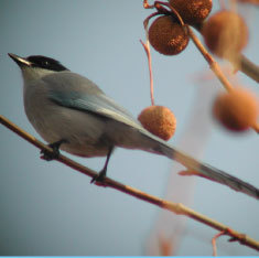 全長14 cmの冬鳥です。翼に白い模様があることから着物の紋付きにたとえて紋付鳥と呼ばれることもあります。公園を始め、市街地でもよく見られます。木の枝や木杭、電柱にとまり、ピョコッとお辞儀した後細かく尾羽を震わせる行動をします。