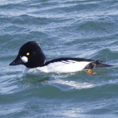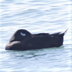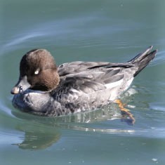 10月から3月にかけて三番瀬に飛来するカモの仲間です。キンクロハジロに似ていますが、本種は頭部に飾り羽がありません。海底のアサリなどの貝類を食べ、時折潜水している様子が見られます。