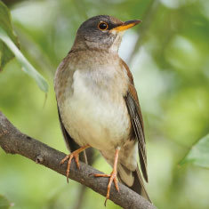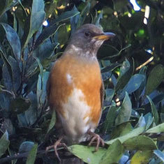 全長24 cmの冬鳥で名前の通り腹面が白いことが特徴です。大きさも体型もツグミに似ています。本来は西日本で越冬することが多い本種ですが、浦安でもたまに見かけます。アカハラと同じく公園や防風林などの林縁でみられることが多いです。