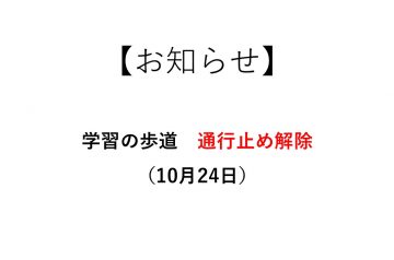【お知らせ】学習の歩道一部区間通行止め解除